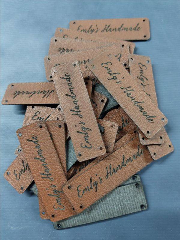 Koyu kahve rengi lazer kazıma deri etiketler, el işi kazaklarınız ve diğer el işi ürünleriniz için mükemmel bir tamamlayıcıdır. El işi kazaklar, atkılar, eldivenler ve diğer tekstil ürünlerinizde kullanarak, ürünlerinizin kalitesini ve değerini artırabilirsiniz.